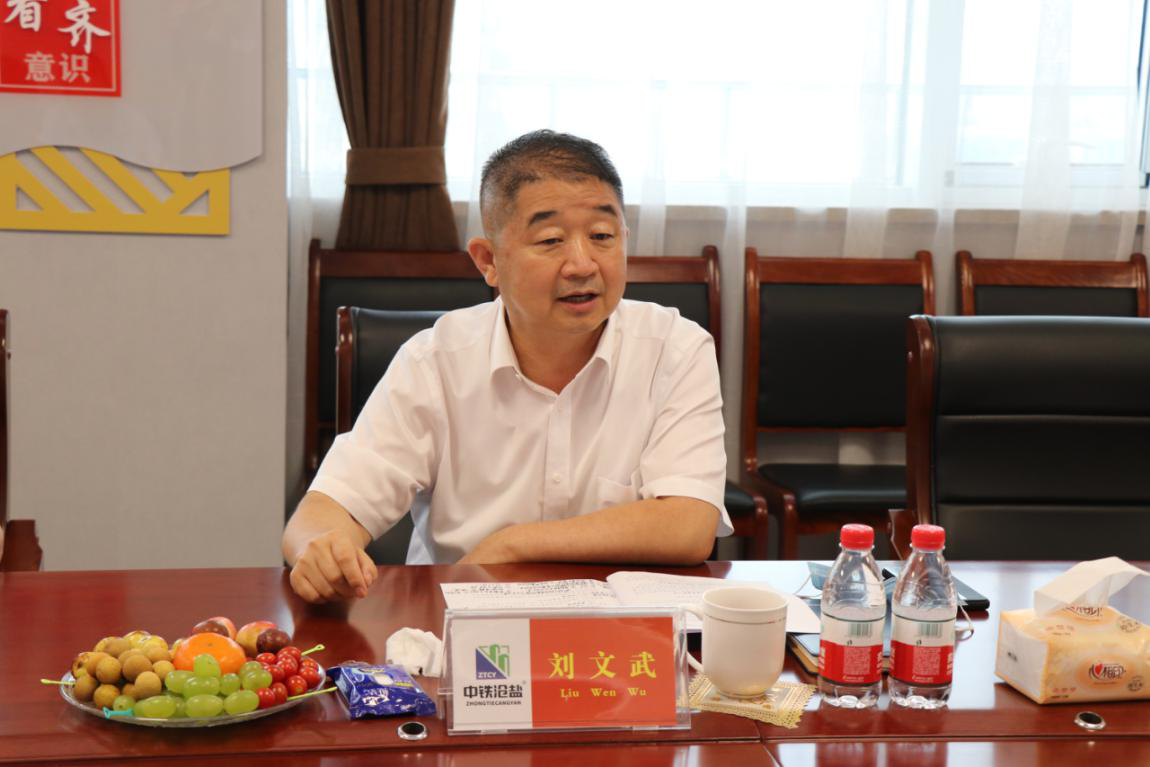 參觀完車間后劉文武一行與合資公司領(lǐng)導(dǎo)班子成員召開座談會(huì),會(huì)上合資公司副董事長王峰偉、總經(jīng)理王志巖分別就公司經(jīng)營情況及生產(chǎn)情況進(jìn)行匯報(bào)。聽取總結(jié)匯報(bào)后,滄鹽集團(tuán)董事長劉建軍首先對(duì)合資公司目前經(jīng)營情況表示肯定,并提出要求,一是盡快提高產(chǎn)能,擴(kuò)大公司規(guī)模。二是盡快組建設(shè)計(jì)研發(fā)團(tuán)隊(duì),組建公司自己的建筑安裝團(tuán)隊(duì),形成深化、制造、安裝服務(wù)產(chǎn)業(yè)鏈。三是要結(jié)合港口鐵路沿線建設(shè)發(fā)展配套產(chǎn)業(yè)開創(chuàng)渤海新區(qū)高質(zhì)量跨越式發(fā)展新局面。